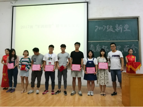 会议共有5项议程。首先由张恒道老师向17级“军训助管颁发聘书,对他们的付出表示肯定。第二项议程由学生会主席李泽鹏介绍团学的基本情况。李泽鹏学长通过自己从干事到主席的感受,向17新同学展现了一个和谐友爱的团学大家庭,并期待新鲜血液的加入。第三项议程是各部门部长顺序上台,通过精美的PPT和生动的演讲清晰的展现了每个部门的主要工作与活动。
