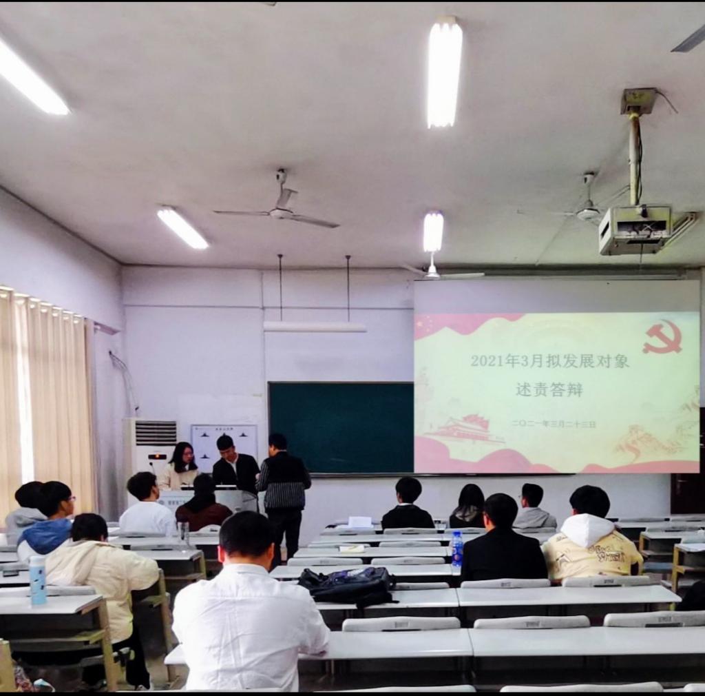 为加强培养入党积极分子的党性修养和思想意识,促进K体育·「中国」官方网站学生第二党支部和研究生党支部持续良好发展,3月23日中午,学生第二党支部与研究生党支部在6109教室举行入党积极分子述责答辩会。学生第二党支部书记严胡伟、研究生党支部书记朱虹燕出席会议,两个支部的部分党员和参与答辩的入党积极分子到会。