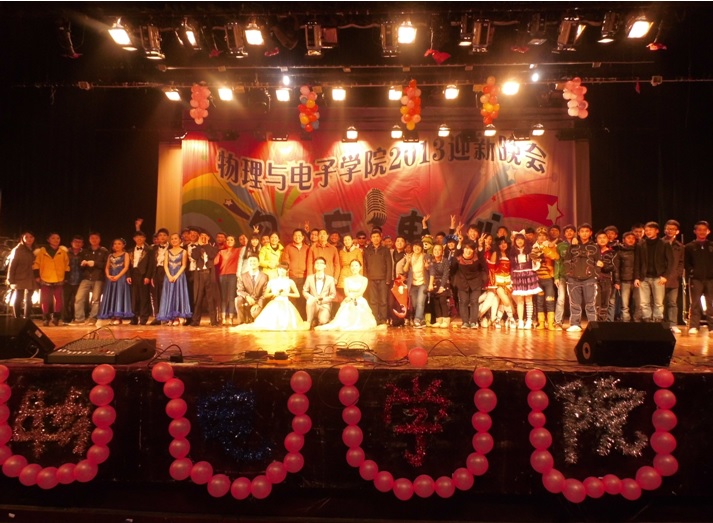 为迎接我院2013级新生的到来,展现我院学子风采,12月15日晚七点,物理与电子学院2013级“勿忘电心”迎新晚会在湖南理工学院演播厅隆重举行。莅临晚会的嘉宾有学院党总支副书记孙亚辉老师,学工办主任张文科老师、学院团总支书记龙颜老师,及2013级各班班主任。晚会还邀请了学校五大明星社团主要负责人及各学院主席团成员出席。
