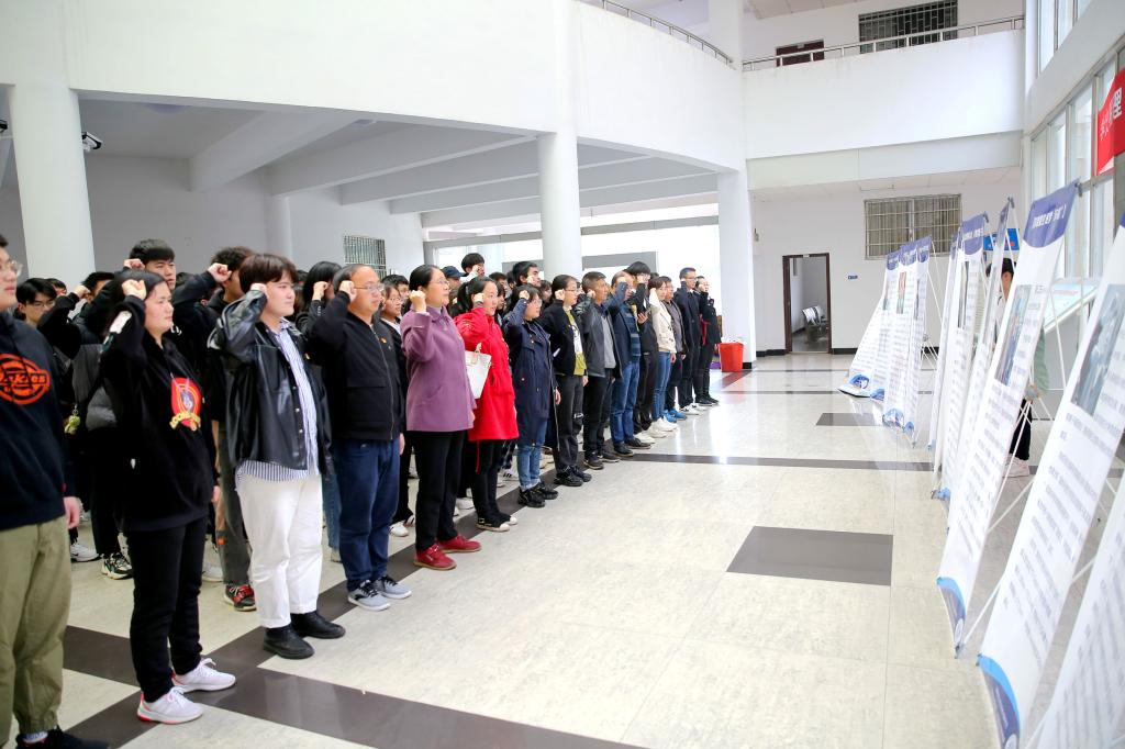 当天下午,K体育·「中国」官方网站召开“诵读科学故事 传承科学家精神”学党史主题活动及座谈会,物理学院党委书记罗文华,学生第一党支部书记何小娅及相关学员参与座谈。全体党史师生在爱国科学家展板前,重温入党誓词。
