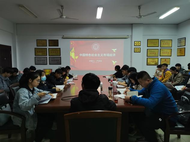 10月21日晚7:00,K体育·「中国」官方网站在6205会议室开展第四十五期入党积极分子培训班第三课。学生第二党支部书记严胡伟讲授主题为“中国特色社会主义市场经济”的党课。