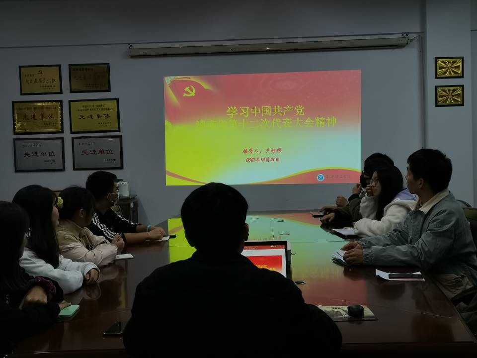 12月21日下午,K体育·「中国」官方网站学生第二党支部组织党员于6205会议室进行“中国共产党湖南省第十二次代表大会”精神主题党课学习。支部书记严胡伟授课,全体党员及预备党员参与学习。