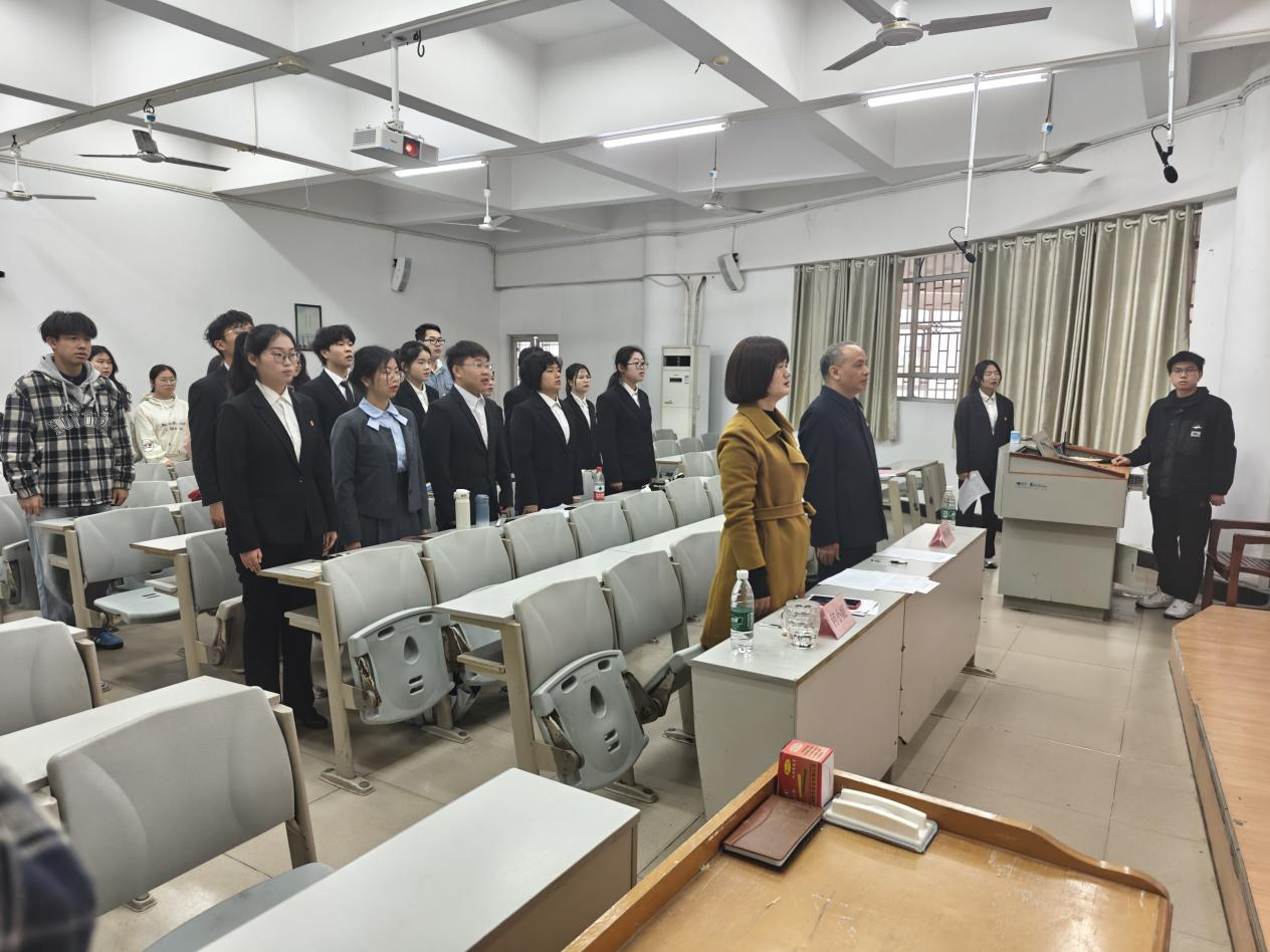 答辩会在庄严的国歌声中正式开始。27名入党积极分子依次围绕个人基本情况、入党动机、党性实践锻炼及对党的理论认识等方面进行5分钟陈述。评委根据答辩内容进行针对性提问,答辩人现场作答。每组同学完成答辩后,评委和现场人员为每位答辩人评分。