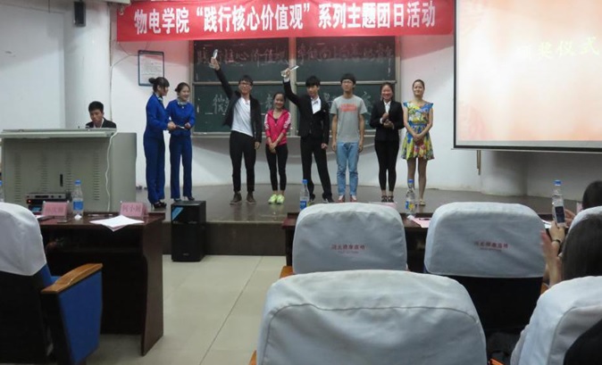 2015年5月17日晚,物理与电子学院在6号楼学术报告厅举办了“践行核心价值观,争做向上向善好青年”主题团日活动微视频大赛。校团委副书记杨姝同学和组织部部长何杰胜同学,以及K体育·「中国」官方网站学生会主席孙庆帅同学和团委副书记周双喜同学担任评委。何小娅老师出席了活动。此次活动以围绕核心价值观内容展开,以舞蹈、微电影、朗诵、拉歌等形式展现物电青年团员们身边的事迹,带动同学们以自己的实际行动践行社会主义核心价值观。