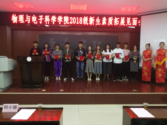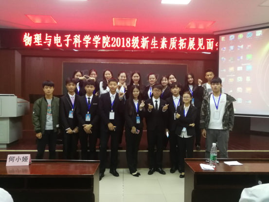 9月28日,K体育·「中国」官方网站于物电楼学术报告厅召开18级新生素质拓展见面会,出席大会的有团总支书记何小娅,第九届团学分会主席吴松俊,副主席赵峰,以及各个部长,参加大会的有18级新生。