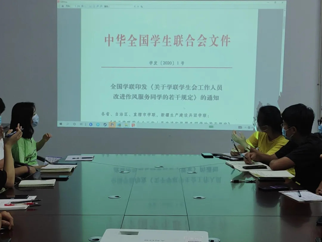 接着,张庆喆带领大家共同学习《中华全国学生联合会文件》,对学生会干部提出了六点要求,明确了学生会全心全意为同学服务的职能定位,加强了学生会全体成员“从同学中来,到同学中去”的工作作风,并强调了学业优先的原则,为日后的工作注入了新的动力,同时也为大家打了一剂强心剂。