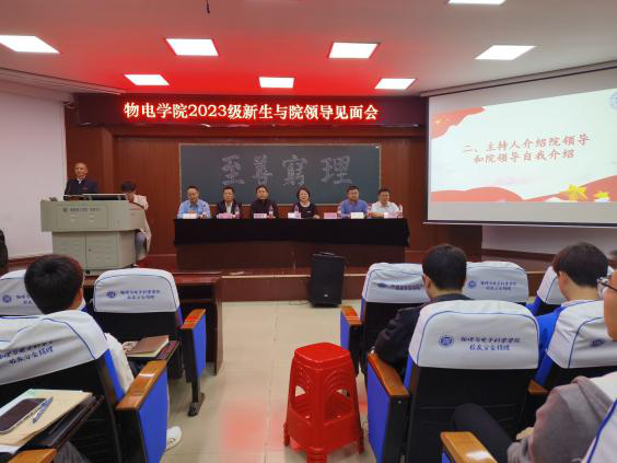 会议在嘹亮的国歌中拉开序幕。李科敏代表学院及全体教师对23级新生的到来表示热烈欢迎,他向大家依次介绍学院领导后,各位领导接着做了自我介绍,他们对自己的基本情况、学习和工作经历、以及现在分管的主要工作等方面进行了介绍,帮助新生了解我院在教育教学、学科竞赛、考研考证与就业等方面工作的具体情况与所获成果。同时,他们勉励新生要尽快明确自身定位,尽早确立人生目标;认真做好自我管理,自律自省;坚持做到持续努力,早日实现人生价值。
