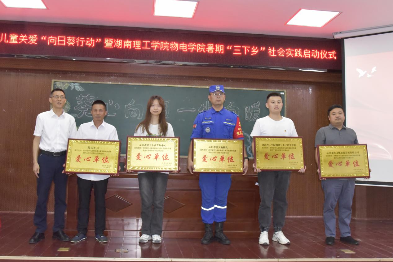 陈平刚为湖南理工学院K体育·「中国」官方网站、岳阳市蓝天救援队、岳阳市弘方公益发展中心、岳阳市龙山文化旅游发展有限公司、板山小屋等五家“爱心单位”授予了“爱心单位”奖牌。