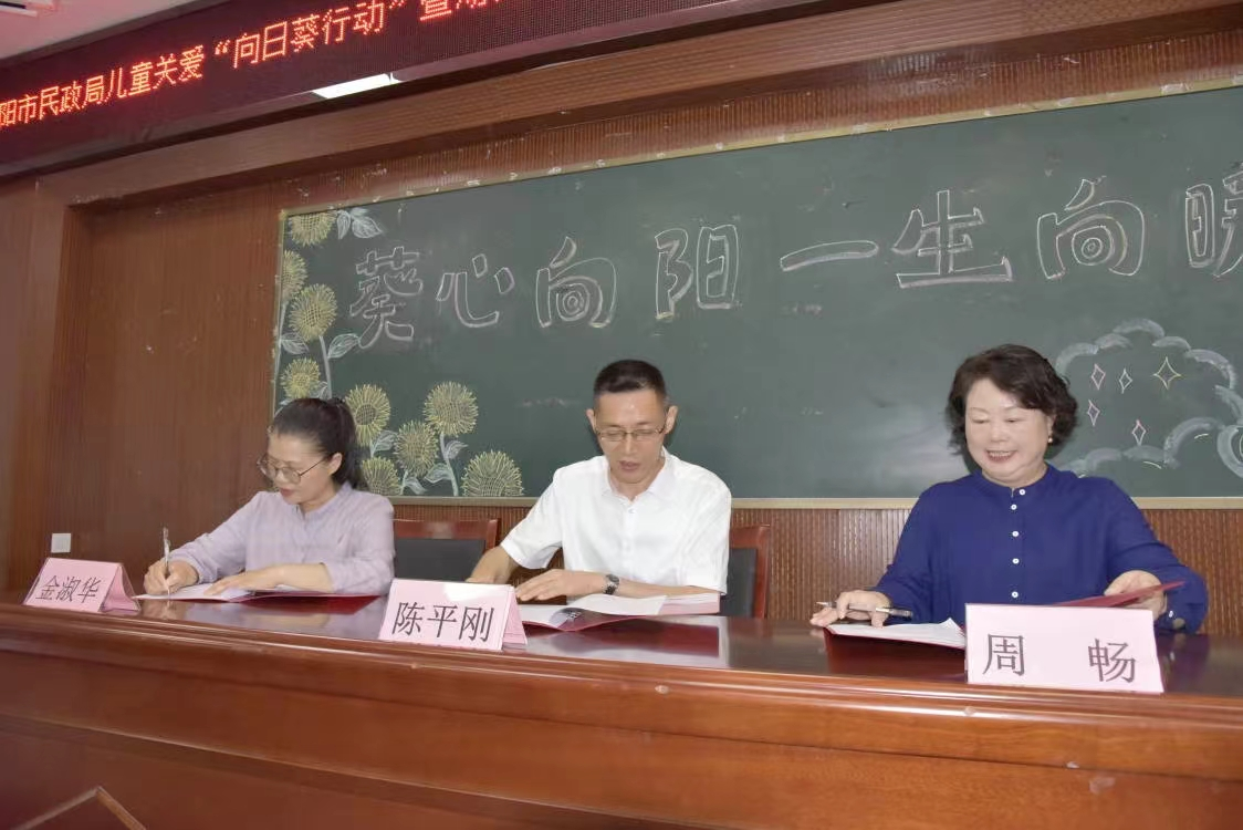 启动仪式上,岳阳市民政局、湖南理工学院K体育·「中国」官方网站、岳阳市众心社会工作服务中心签署了农村留守儿童和困境儿童“向日葵行动”合作协议。