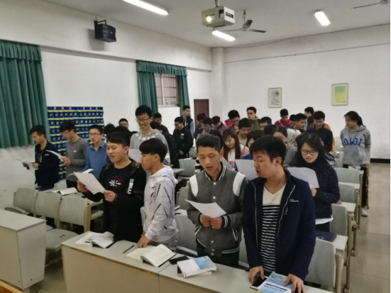 当上课的铃声还未响起,物电的同学早已满怀热情的站在教室,合声朗读着一篇篇充满爱国主义的诗歌。“因为我对这土地爱得深沉…...”是来自内心深处的独白,激情澎湃的声音响彻6栋教学楼,同学们用朗朗的读书声表达着对祖国进步自豪,对党和国家的热爱。