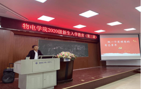 活动伊始,罗文华书记做了题为“做一个有理想的有志青年”的演讲。首先,罗书记从个人亲身经历切入,阐述了“人为什么要有理想”的原因,并告诫20级新生:作为新时代青年,需要将个人理想与国家命运相结合,展现责任与担当精神,这样,理想也会更加有意义,更容易实现。