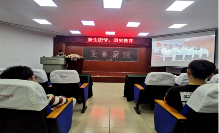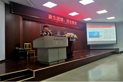 之后,为巩固团员对于共青团的基本认知,张老师带领20级新生回顾了有关共青团象征的知识,重温了共青团团歌和入团宣誓词。此外,通过播放学校五四青年节的快闪合唱视频,使20级新生感受到了祖国的繁荣昌盛与肩负在身上的使命。
