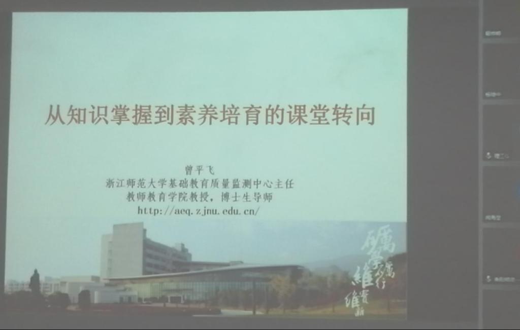 接下来是学术报告,浙江师范大学博士研究生导师曾平飞教授(线上)做了题为“从知识掌握到素养培育的课堂转向”的主题报告,湖南省中小学正高级教师吴群教授报告的主题是“基于核心素养的教学设计策略探讨——以语文学科为例”、湖南理工学院李科敏教授的主题报告是“基于培养学生核心素养的教学设计及案例欣赏”。专家们以典型案例深入浅出地剖析了基于核心素养的学科教学设计,为提升教育硕士的教学设计能力,进而提高他们的教育、教学和教研能力提供了范例、指明了方向,会场上不时响起阵阵掌声,与会师生受益匪浅。