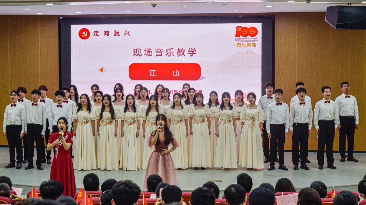 党课正式开始,黄皓华将党的百年历史分为“筚路蓝缕”“ 砥砺前行”“ 春潮澎湃”“ 走向复兴”四个阶段,深情讲述党在百年奋斗中哪些激情燃烧的岁月,通过音乐学院师生演绎的《浏阳河》《游击队之歌》《春天的故事》《我和我的祖国》《江山》一首首激扬的歌曲,K体育·「中国」官方网站学生朗诵的《“两弹一星”精神》等艺术形式,让我们重新定义时代强音。革命历史舞蹈,党史互动问答更是打造全新党课形式,在场党员和入党积极分子无不感受到其中坚定的信仰和信心,沉浸在这场音乐旅途中。