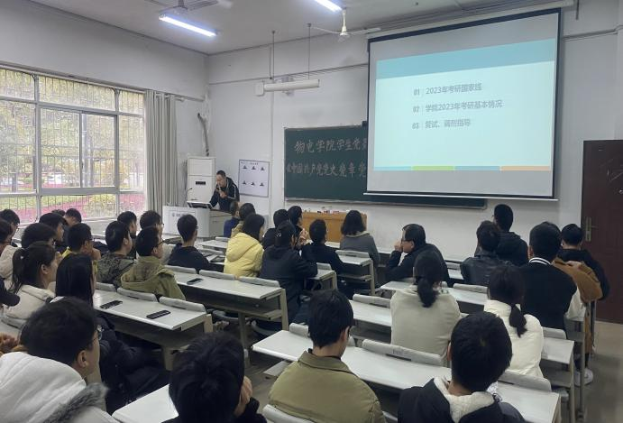 邹志军首先展示了近几年学院考研整体情况,结合多年研究生招生工作经验,依次介绍了复试流程、复试内容、复试准备以及相关注意事项。他指出,面对专业考研严峻形势,同学们应该及早准备,周密制定学习计划,不打无准备之战,还从考研调剂时间、调剂院校、调剂注意事项等方面给予学生建议,最后老师共同表达了对同学们的希望,将竭尽所能帮助同学,共候佳音。