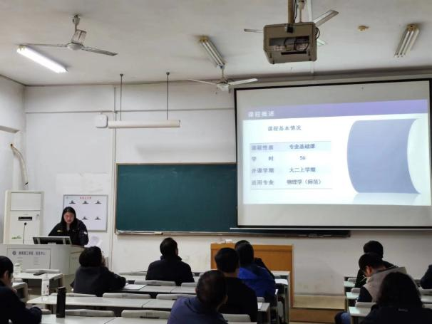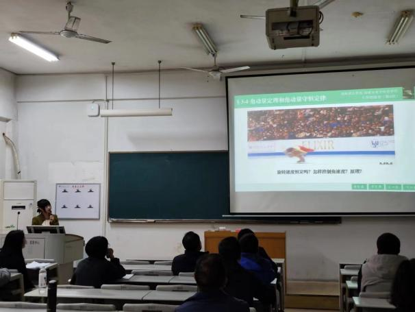 陈灏博士从课程概述、学情分析、实施方案和建设成效四个方面概述了《光学》课程思政建设现状。她从屈原的《天问》开始,介绍了望远镜的发展历程,融入我国传统文化和领先世界的FAST望远镜等思政内容,引导学生学习瑞利判据知识点。邓姣博士以《大学物理学(上)》第3章第4节的“刚体定轴转动的角动量定理和角动量守恒定律”为例,介绍了刚体定轴转动的角动量和角动量守恒定律,并与质点动力学的动量定理和动量守恒定律进行了类比。课程融入了“类比学习”、“奥运健儿夺冠为国争光”以及“科研人员潜心研发直升机填补国内空白”等思政内容。聂跳平博士以《计算物理学》第2章第2节的“非线性方程的数值解法”为例,介绍了迭代法中的二分法求解非线性方程,融入了 “迭代精神的思考:不断完善和改进的精神、勇于尝试和探索的精神、持之以恒的精神”等思政内容。