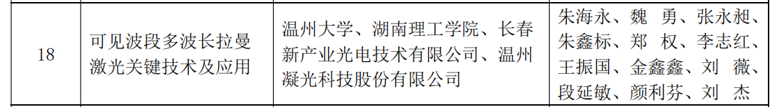 2024年12月25日,“第十六届中国商业联合会服务业科技创新奖”评选结果公示,我院魏勇教授与温州大学、长春新产业光电技术有限公司、温州凝光科技股份有限公司合作申报的“可见波段多波长拉曼激光关键技术及应用”成果获评一等奖。这是继2023年获评全国服务业科技创新奖一等奖之后,魏勇教授取得的又一突破性成果。连续2年获评省部级一等奖,是魏勇教授在激光关键技术及应用领域持续深耕的结果,也是K体育·「中国」官方网站重视高质量科研成果产出与转化工作的重要体现。