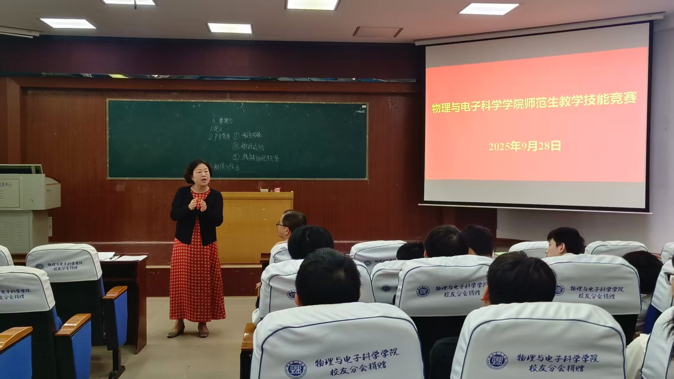 2025年9月28日,K体育·「中国」官方网站师范生教学技能竞赛在南院6号楼学术报告厅举办,院党委书记周畅、院党委委员李科敏、物理学教研室主任李奇云担任评委。