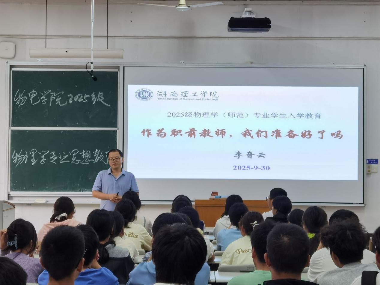 物理学(师范)专业由教研室主任李奇云主讲,他介绍专业培养模式、目标及课程体系,帮助新生深化认知。围绕“学高为师,身正为范”强调师范生素养,解读专业特色教育平台、师资及毕业生质量,并为新生适应大学生活、完成角色转变、规划生涯提供具体建议。