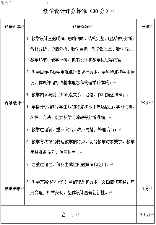 附件: 1. 教学设计评分标准