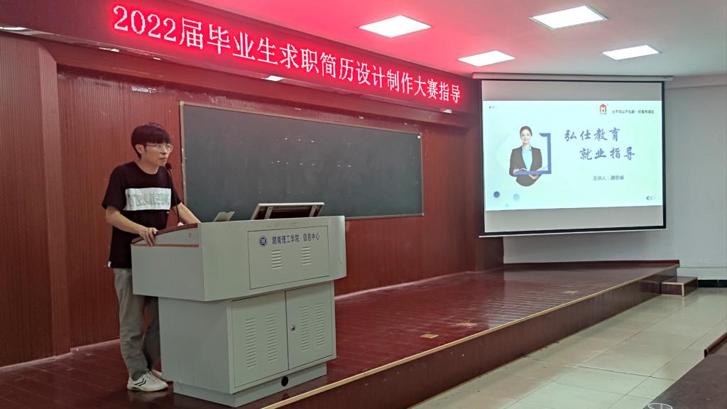 6月30日下午,我院于六栋学术报告厅开展了2022届毕业生求职简历设计制作大赛指导讲座,特邀弘仕教育特级教师龚奇峰主讲。学院党委副书记张陈武、弘仕教育人事经理陈晶晶出席,讲座由学院就业专干严胡伟老师主持, 18级全体同学参加。