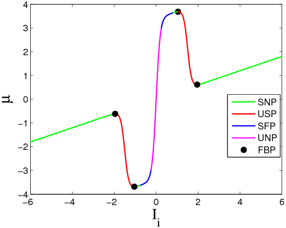 图2 电流刺激下禁忌神经网络模型的平衡点及稳定性.