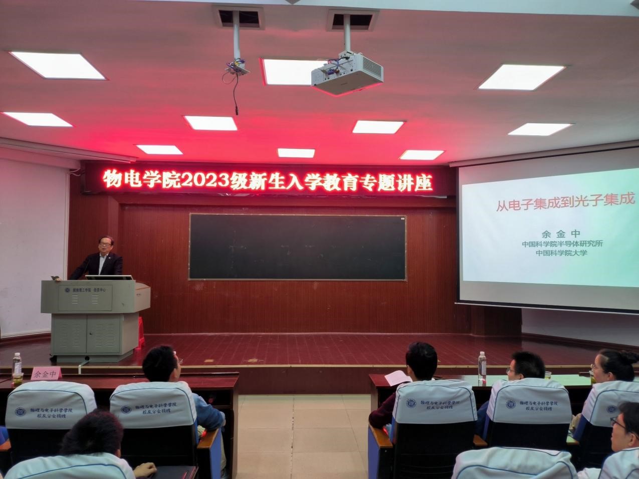 2023年10月16日晚,中国科学院教授余金中和研究员王杏华受邀在六栋学术报告厅为K体育·「中国」官方网站2023级电子、光电和微电专业新生(含研究生)作题为“从电子集成到光子集成”的学术报告。学院党委副书记李科敏主持。