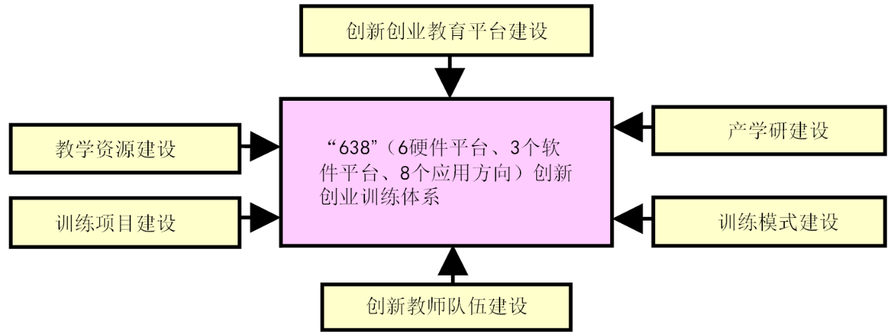 实验室贯彻“开思维、育专长、重创新、提素质”的训练理念,以构建特色创新创业训练体系为核心,重点推进教师团队、训练平台、教学资源、训练项目的建设,积极实施多层次的创新创业训练模式,努力培养具备创新意识和创新能力、符合社会和企业需求的高素质光电类工程创新创业人才。实验室总结现有成果和经验,制定了符合我校实际的“638”创新创业训练体系。