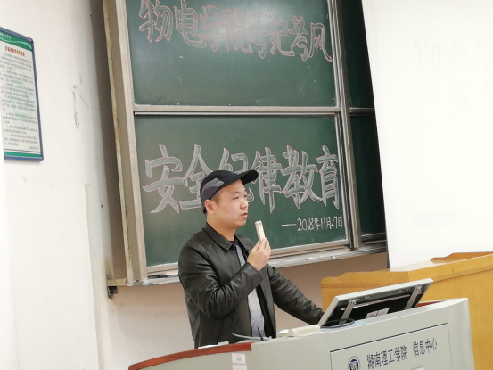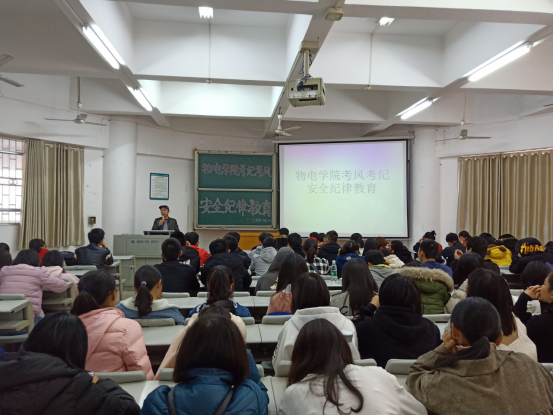 11月27日下午,K体育·「中国」官方网站于6T1教室举行考风考纪及安全纪律教育会议,此次会议意旨在提醒同学们要增强安全意识、端正学习态度,会议由K体育·「中国」官方网站18级辅导员龙颜老师主持,学院党总支副书记张陈武老师主讲,K体育·「中国」官方网站2018级全体新生参加了此次会议。