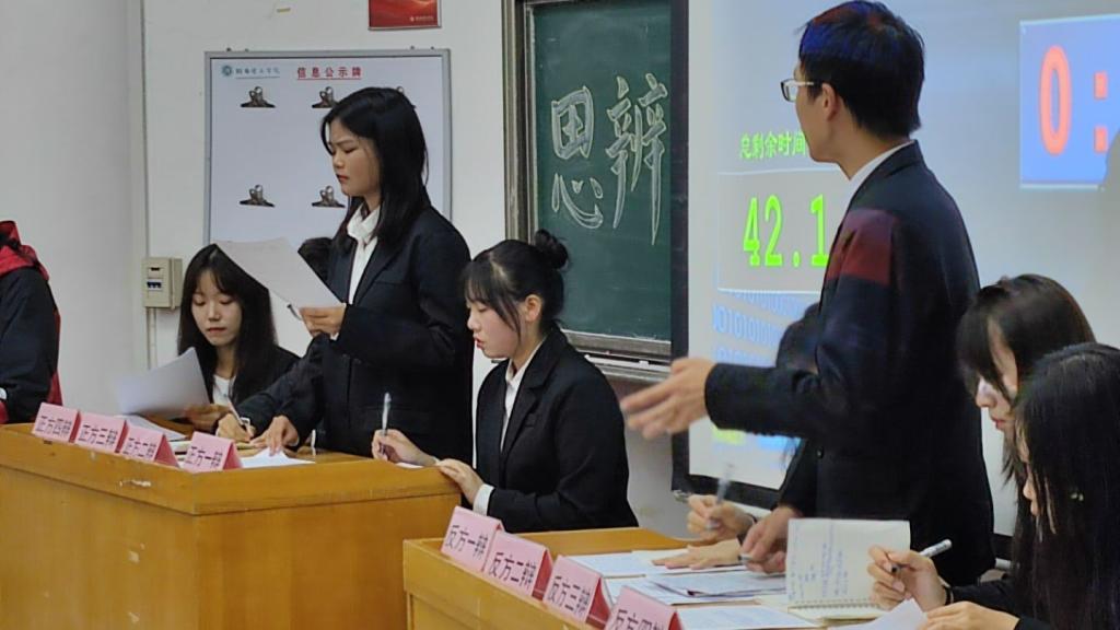 群雄舌战展雄风,争锋相对辩天下。比赛伊始,双方选手迅速就位,在主持人简单介绍比赛规则后,一场头脑风暴骤然展开。比赛期间,双方选手条理清晰,抓住对方逻辑上的漏洞进行反驳,有理有据,有来有往,通过立论、驳论、质询、总结等环节不断破敌论,立己论。一场注定烧脑的比赛,余下的必定是璀璨的黄金。