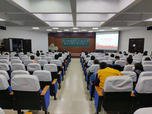 11月9日晚,K体育·「中国」官方网站于6栋学术报告厅召开第十二届团学新任干部干事见面会。党委书记周畅、副书记李科敏及各年级辅导员出席,第十二届团学全体成员与会,学生会执行主席汤杰主持。