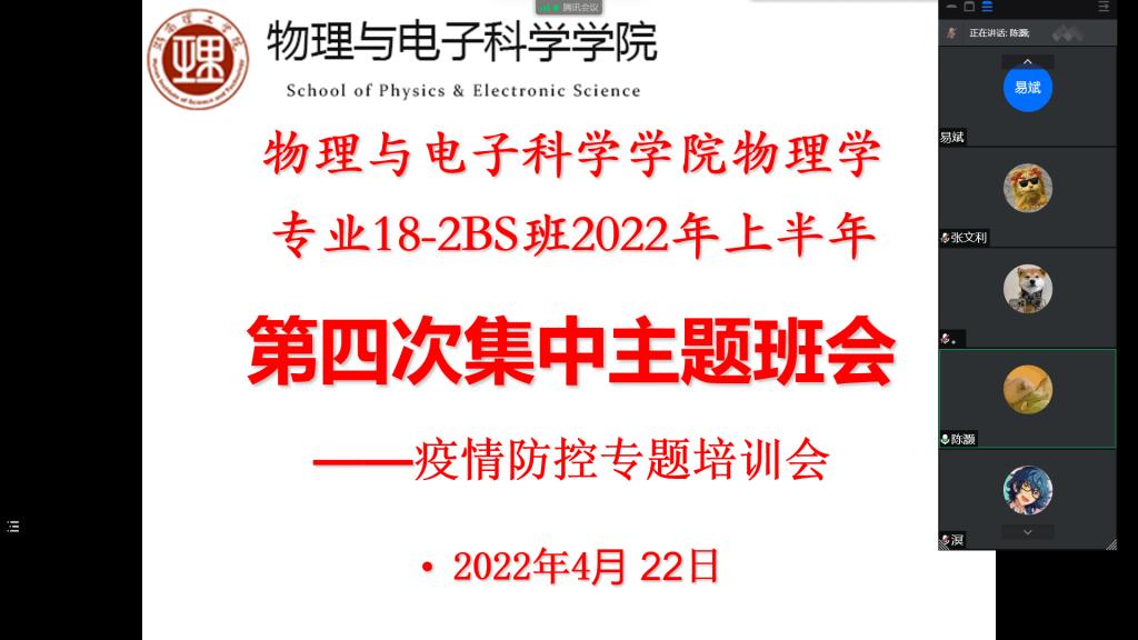 当晚,各班班主任积极响应,采用线上线下结合的方式于各班组织开展本学期第四次集中主题班会,组织全班学生学习疫情防控相关制度并签订《湖南理工学院常态化疫情防控期间学生承诺书》。
